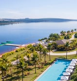 Uma sacada enorme, com vista para represa