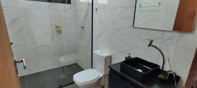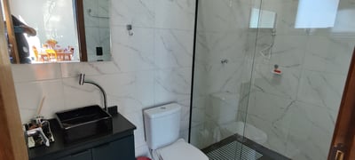 Um total de 4 banheiros luxuosos, água com pressão e água bem quentinha, afinal um bom banho é essencial